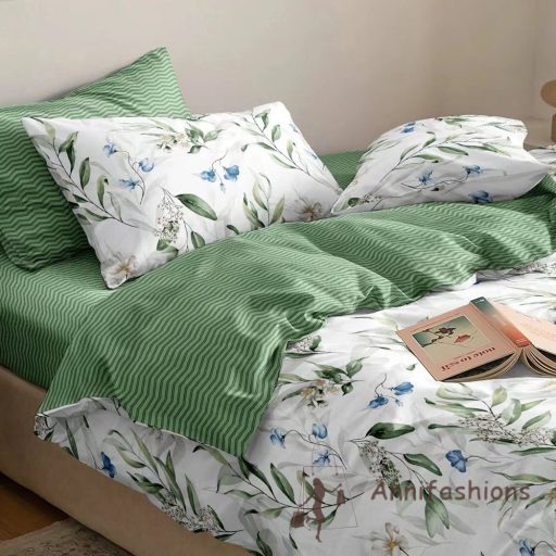 Dobd fel hálószobád hangulatát ezzel a természet ihlette, 7 részes ágyneműszettel, mely friss zöld árnyalataival és elegáns levélmintáival a nyugalom szigetét teremti meg. A garnitúra egyik oldala fehér alapon finoman futtatott levélmintákkal díszített, míg a másik oldala egyszínű zöld, így kedved szerint variálhatod a hangulatot. Az ágynemű anyaga 100% prémium minőségű pamut, amely puha tapintású, jól szellőzik és kíméletes a bőrhöz. A praktikus gombos záródás megkönnyíti a huzatcserét és biztos tartást garantál. Tökéletes választás mindennapi használatra, vagy ajándékként is.