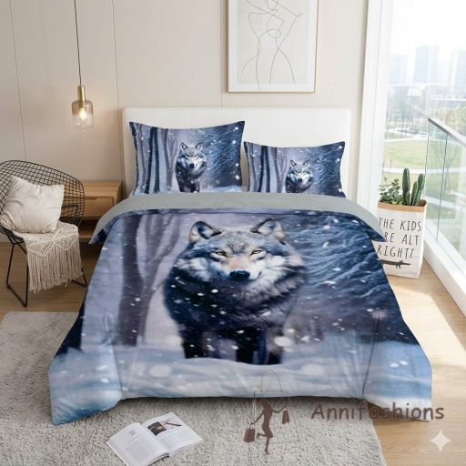 A Téli Farkas 7 részes ágyneműhuzat tökéletes választás a természet és a vadállatok szerelmeseinek. A garnitúra kiemelkedik a hagyományos ágyneműk közül: a nagy felbontású, 3D hatású digitális nyomásnak köszönhetően a farkas tekintete és a havas táj szinte megelevenedik a szobában.