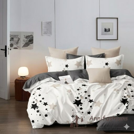 Frissítse fel hálószobáját egyetlen lépésben! Ez a prémium megjelenésű, 7 részes szett nemcsak esztétikailag lenyűgöző, hanem a teljes ágy felöltöztetéséhez szükséges minden elemet tartalmazza. A dizájn alapját a játékos, mégis kifinomult csillagmotívumok adják, amelyek remekül illenek a modern, skandináv vagy minimál stílusú otthonokba.